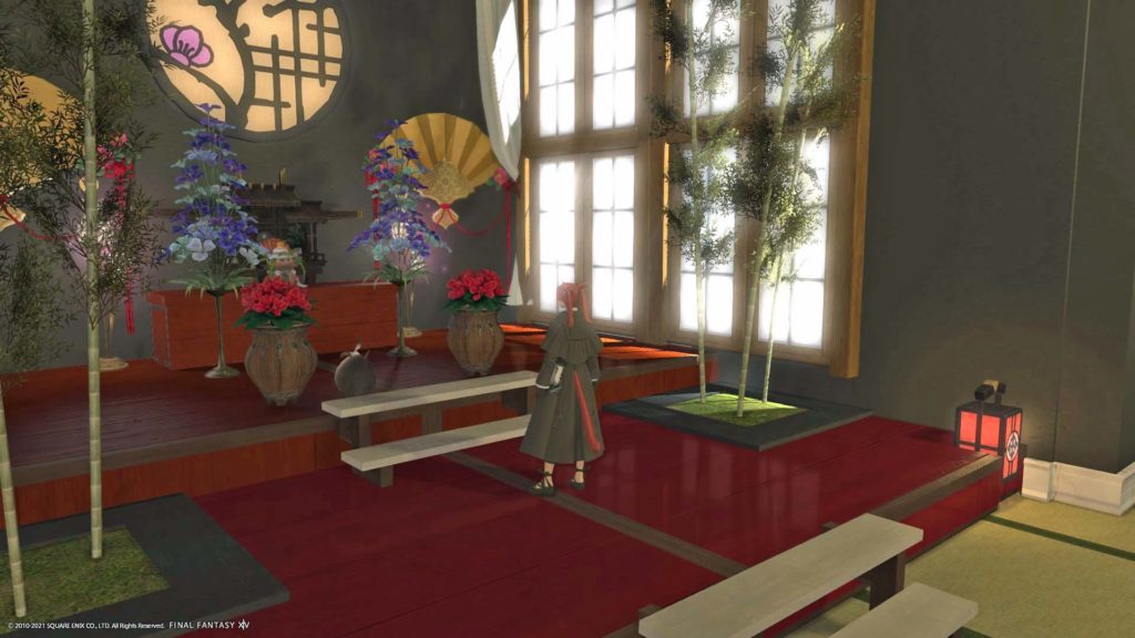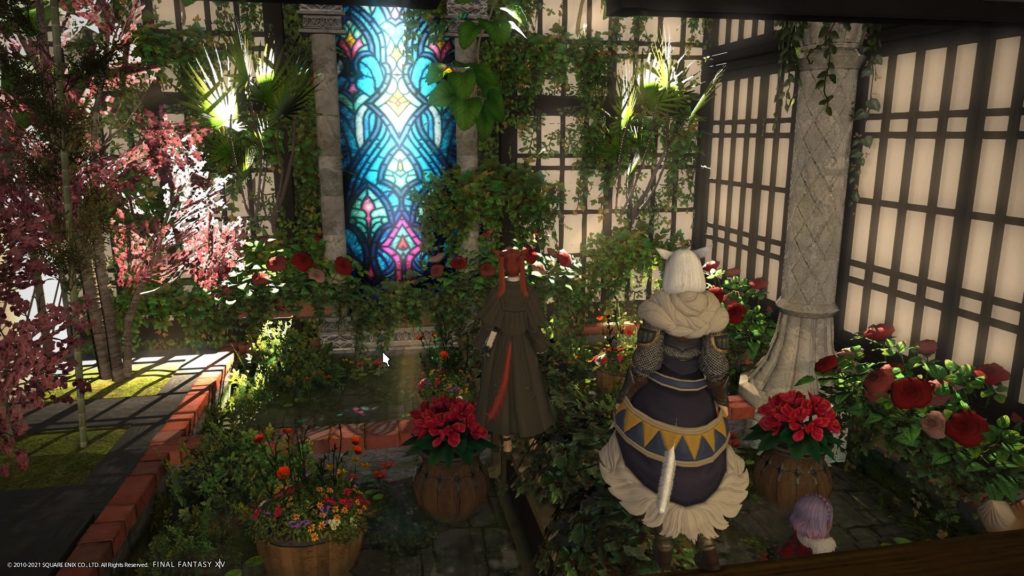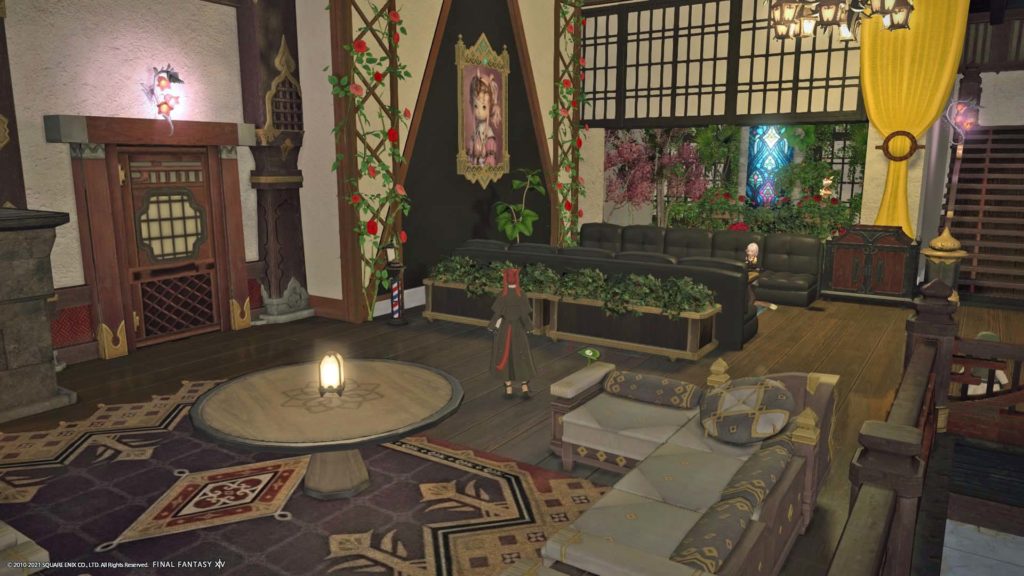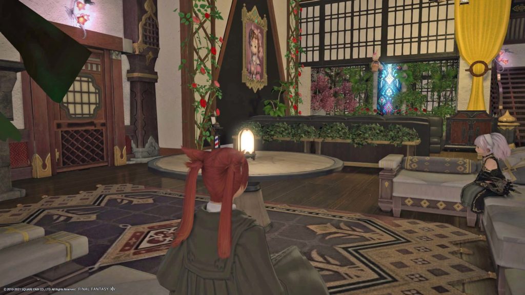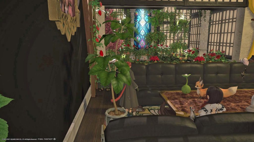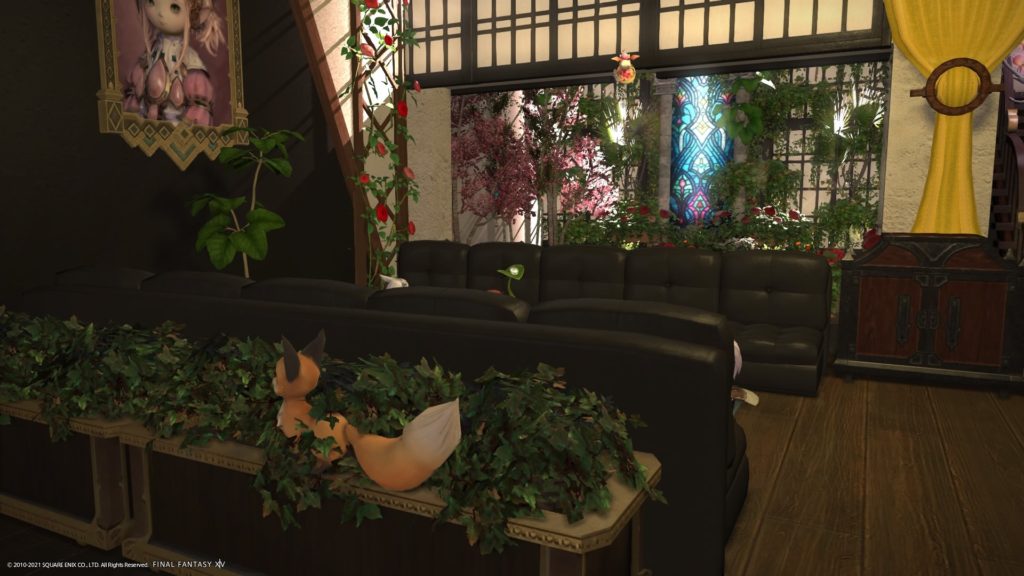 ナナモ様の肖像画があって、その横にも葉のつると花が絡まり、ほのかな豪華さでアレンジされていた。