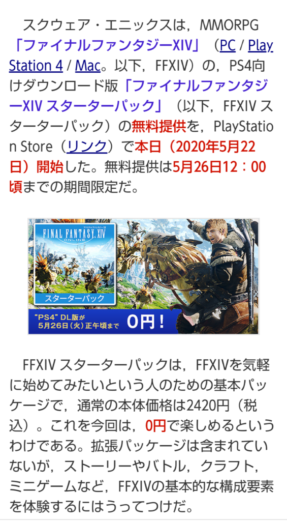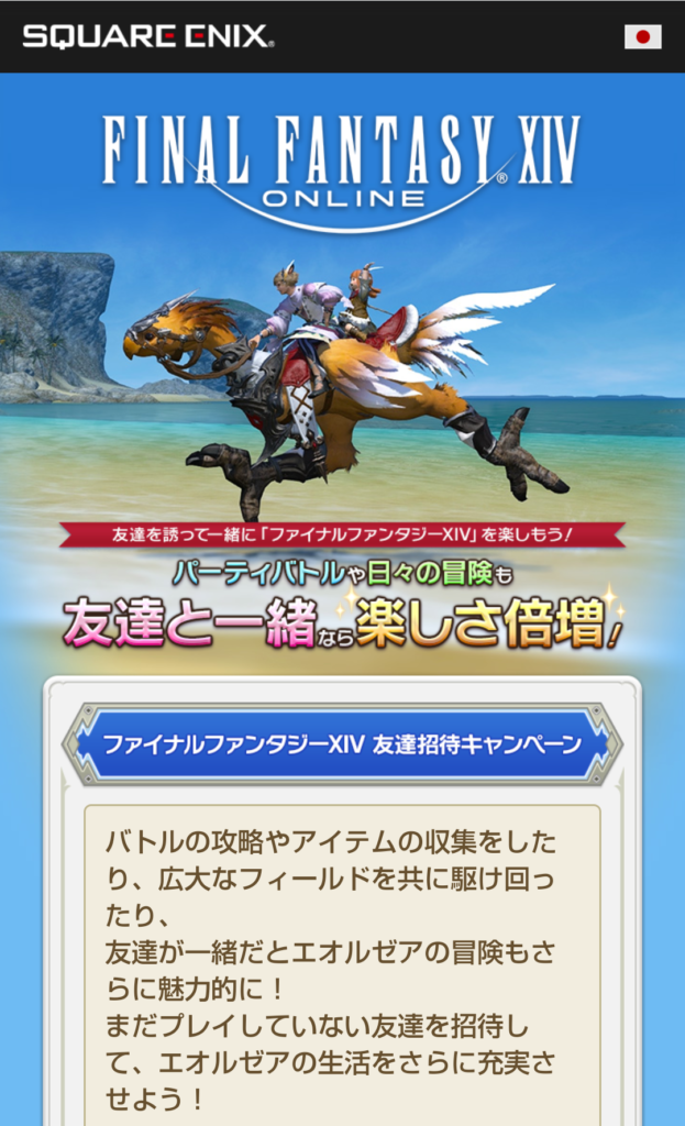 まぁどうしてこれを宣伝するかって言うと、うにの友人がFF14を買うのを見送っていたタイミングでこの広告。これはやるっきゃないでしょ!!と体験版からこちらに即移行!!
