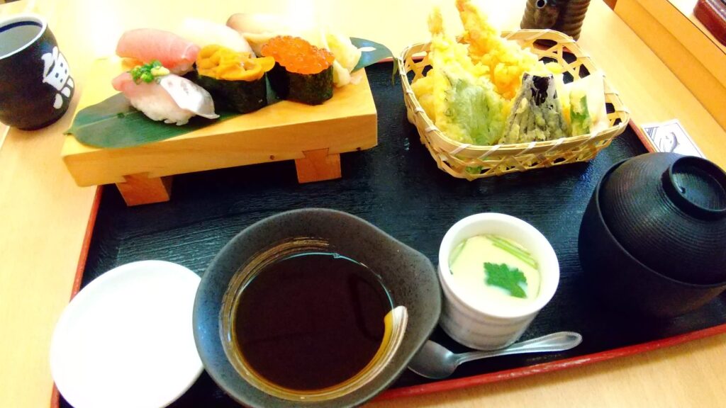 近くに美味しそうな寿司セットを持って来てくれるお店があったよ。