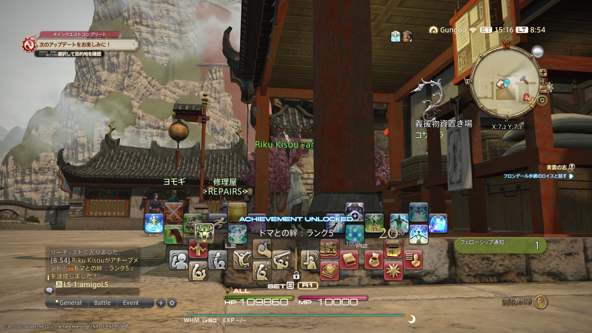 ようやくドマ町人の復興クエを最後まで終えたうに。