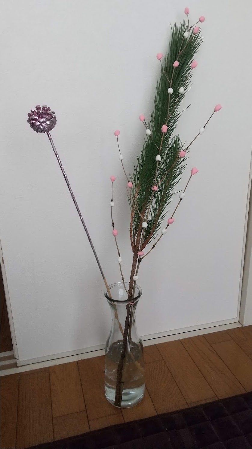 正月雰囲気一新。松の枝って水につけていつまで持つんだろう??