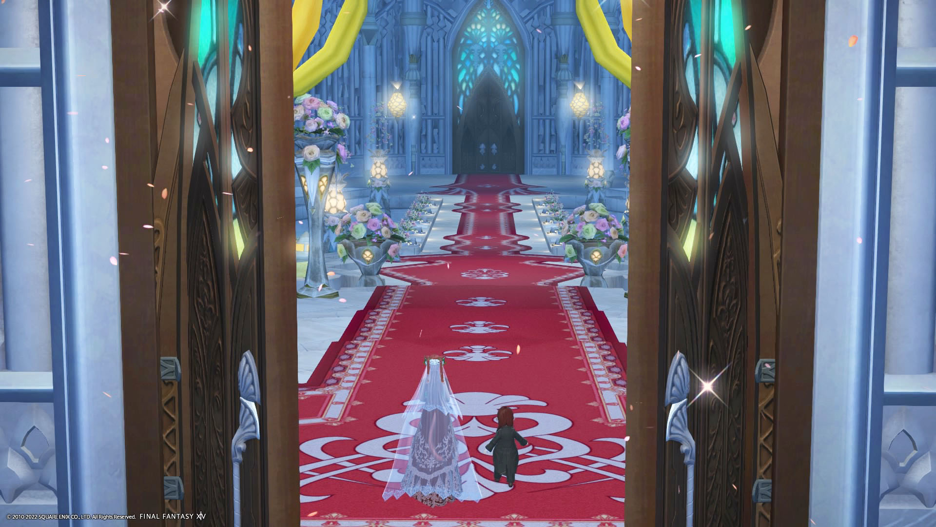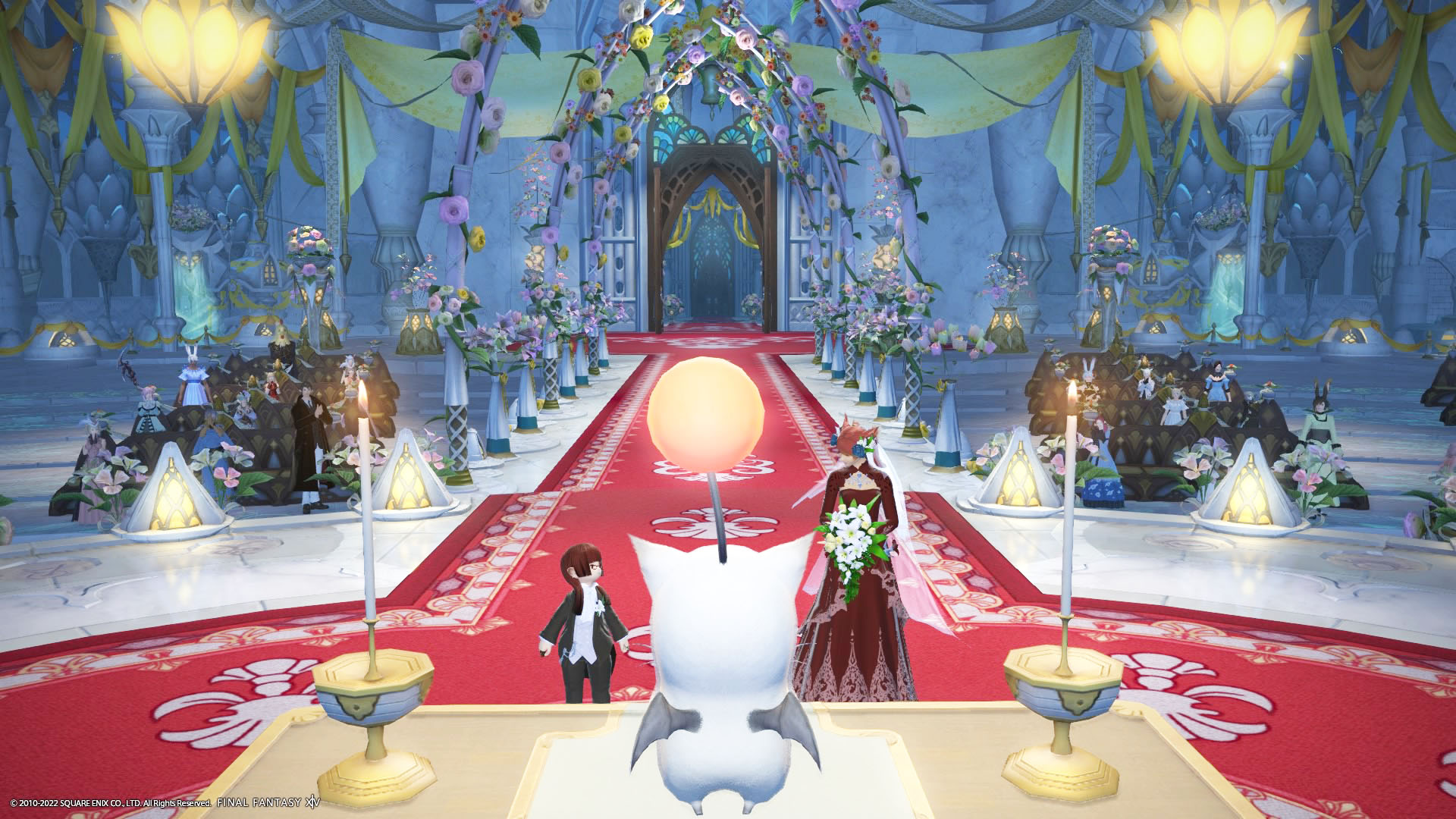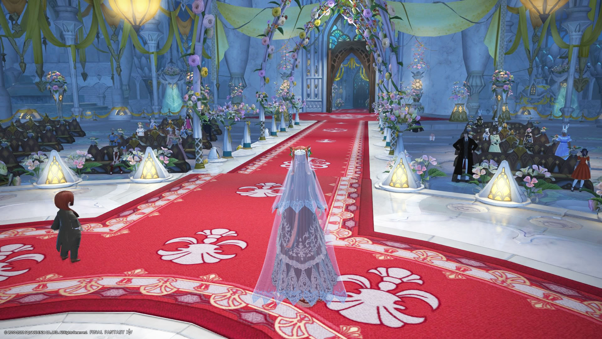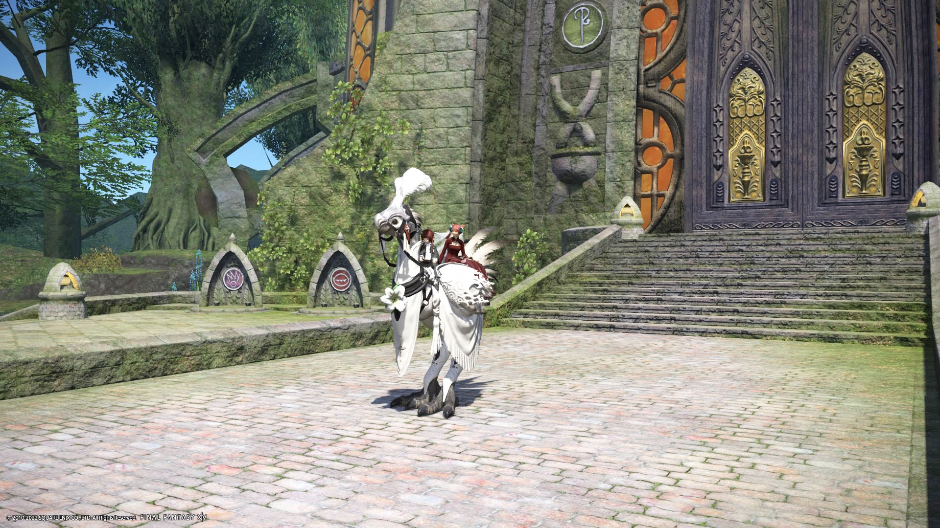 さんぽさんと私は黒衣森 : 東部森林 茨の森の北にある「十二神大聖堂」でその時間を待ってた。参加者様のお迎えの意味も含めて
