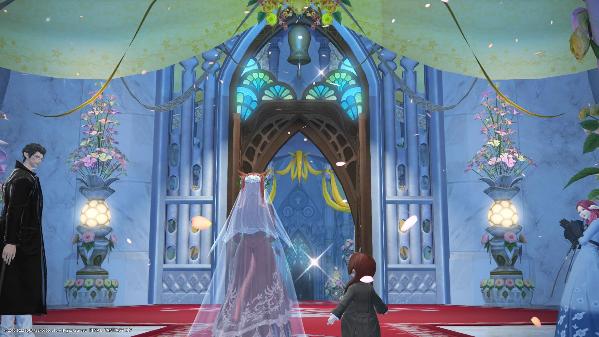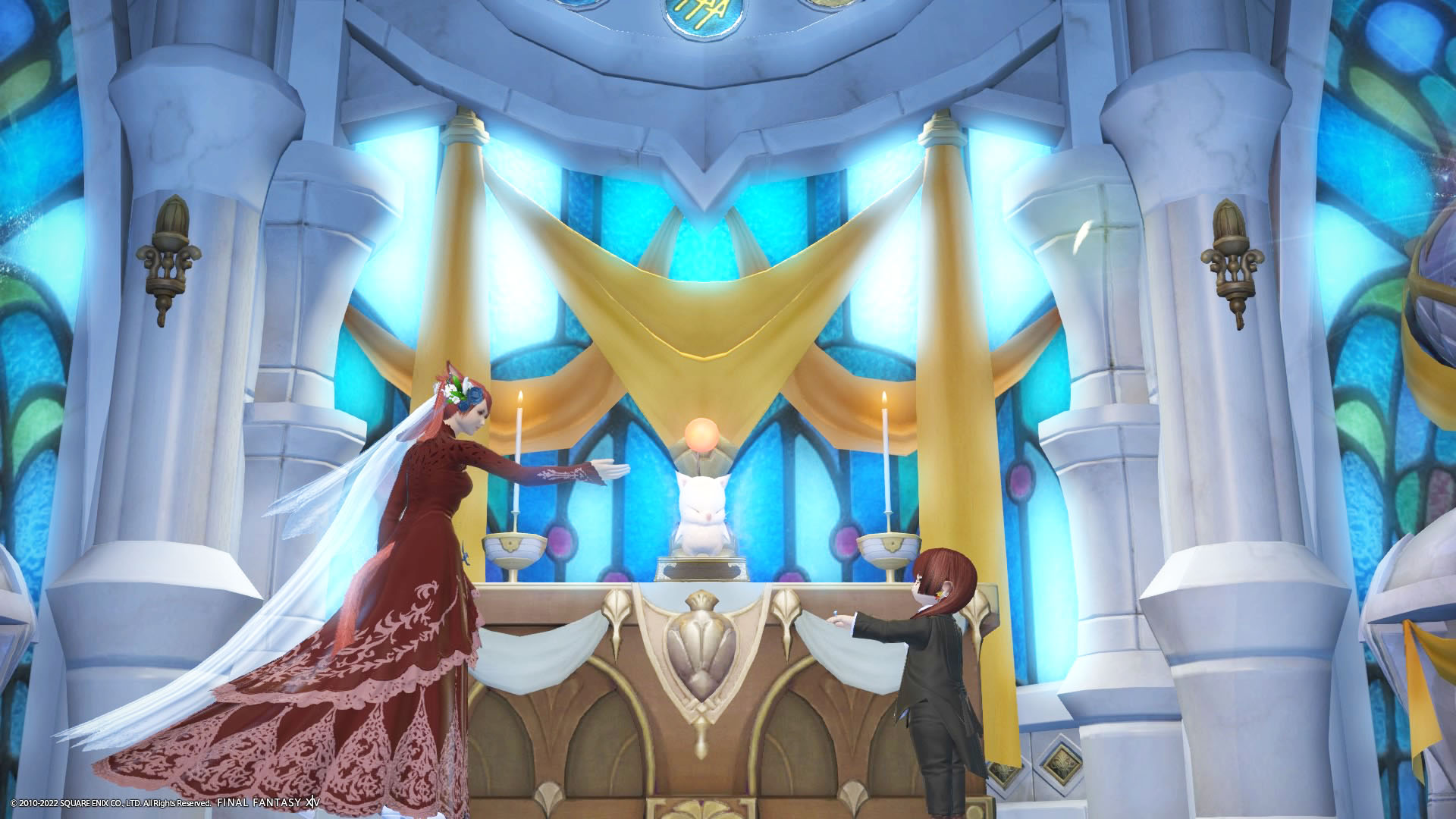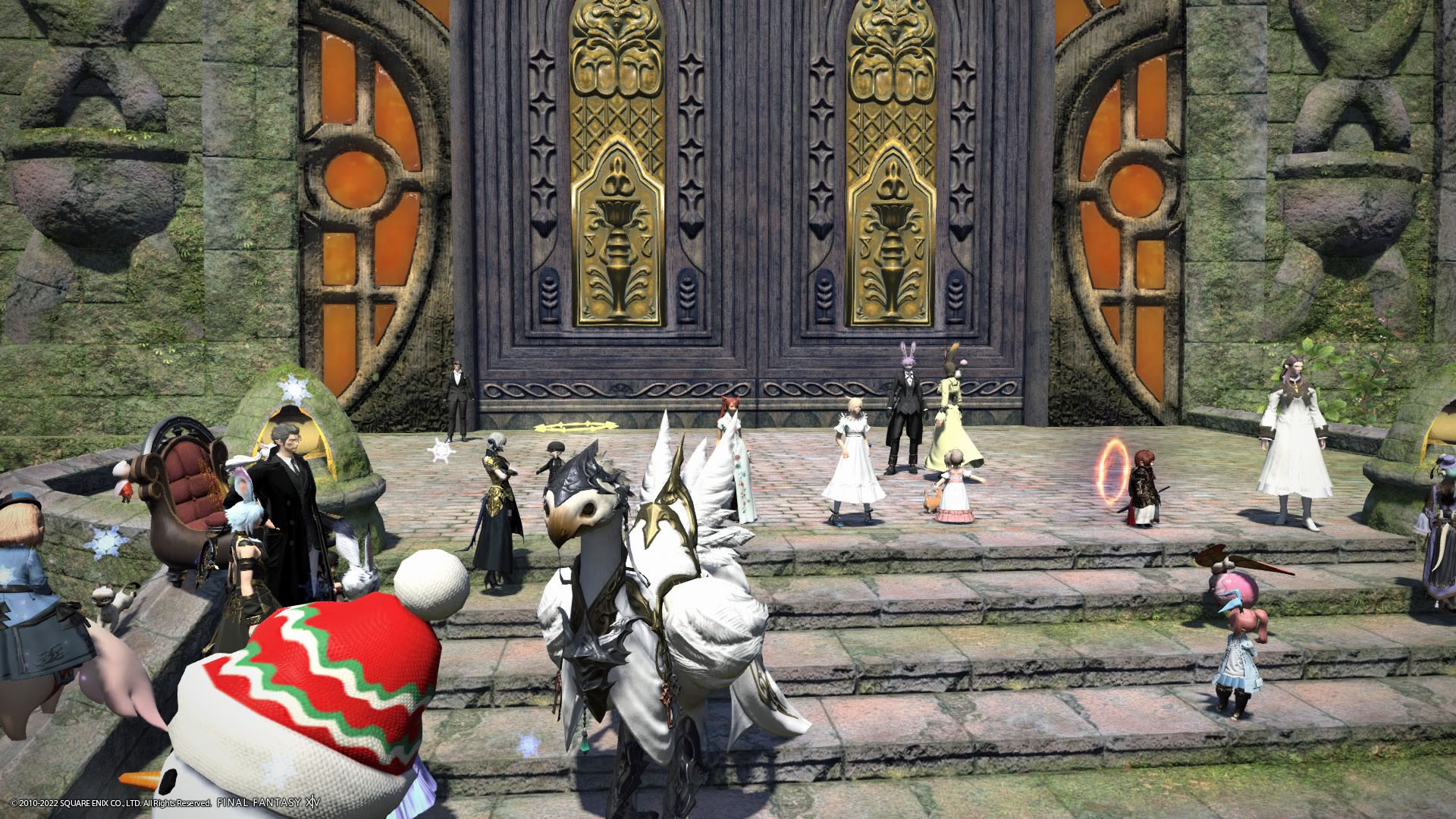 さんぽさんと私は黒衣森 : 東部森林 茨の森の北にある「十二神大聖堂」でその時間を待ってた。参加者様のお迎えの意味も含めて