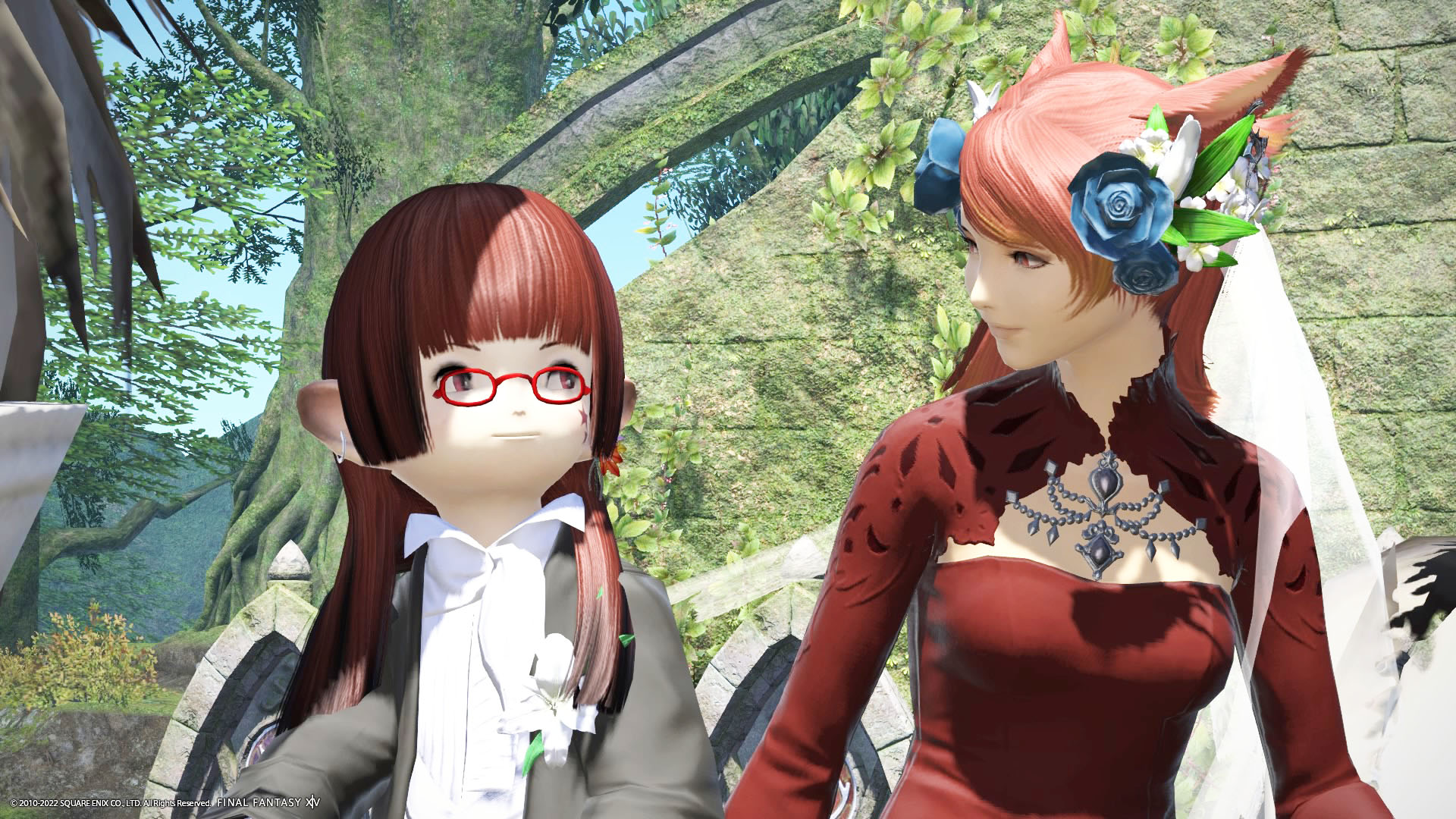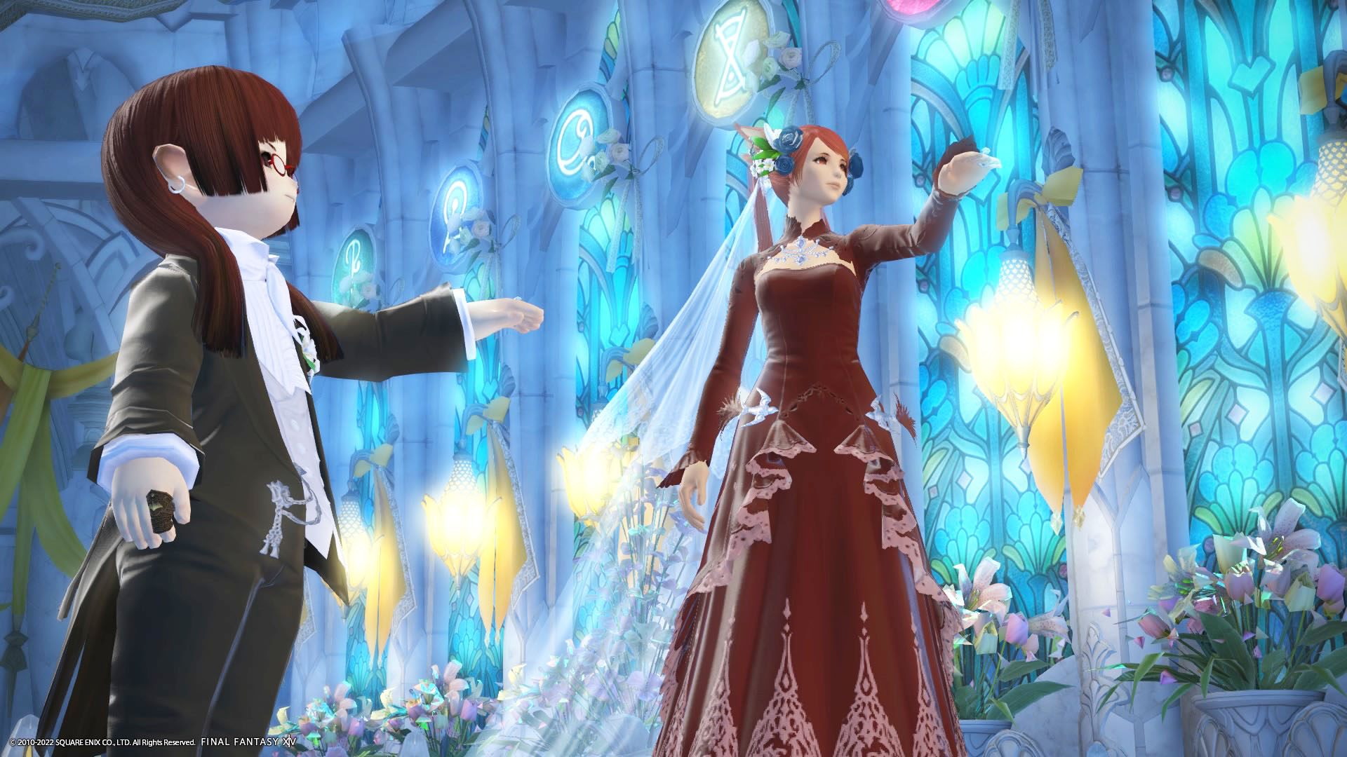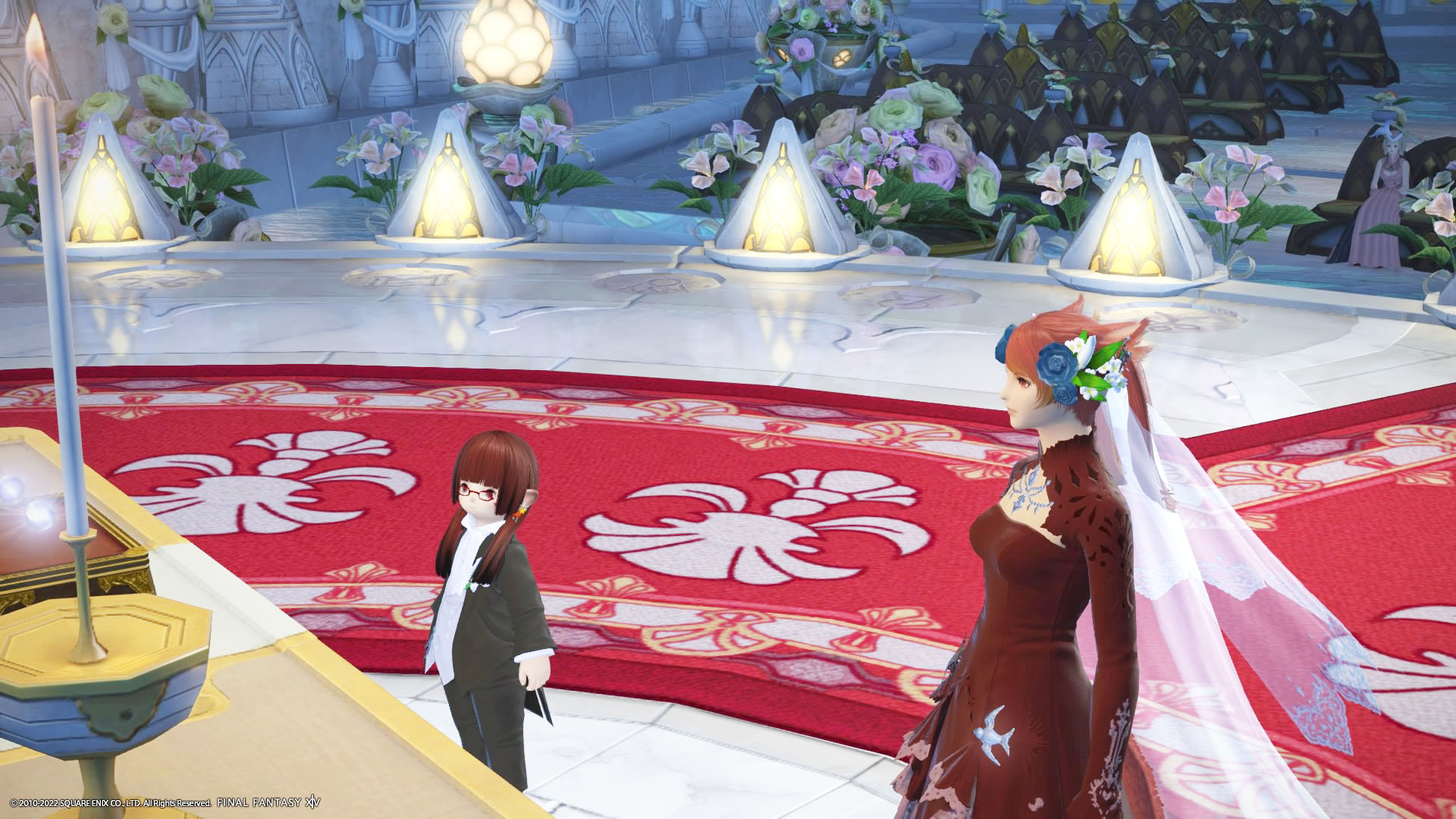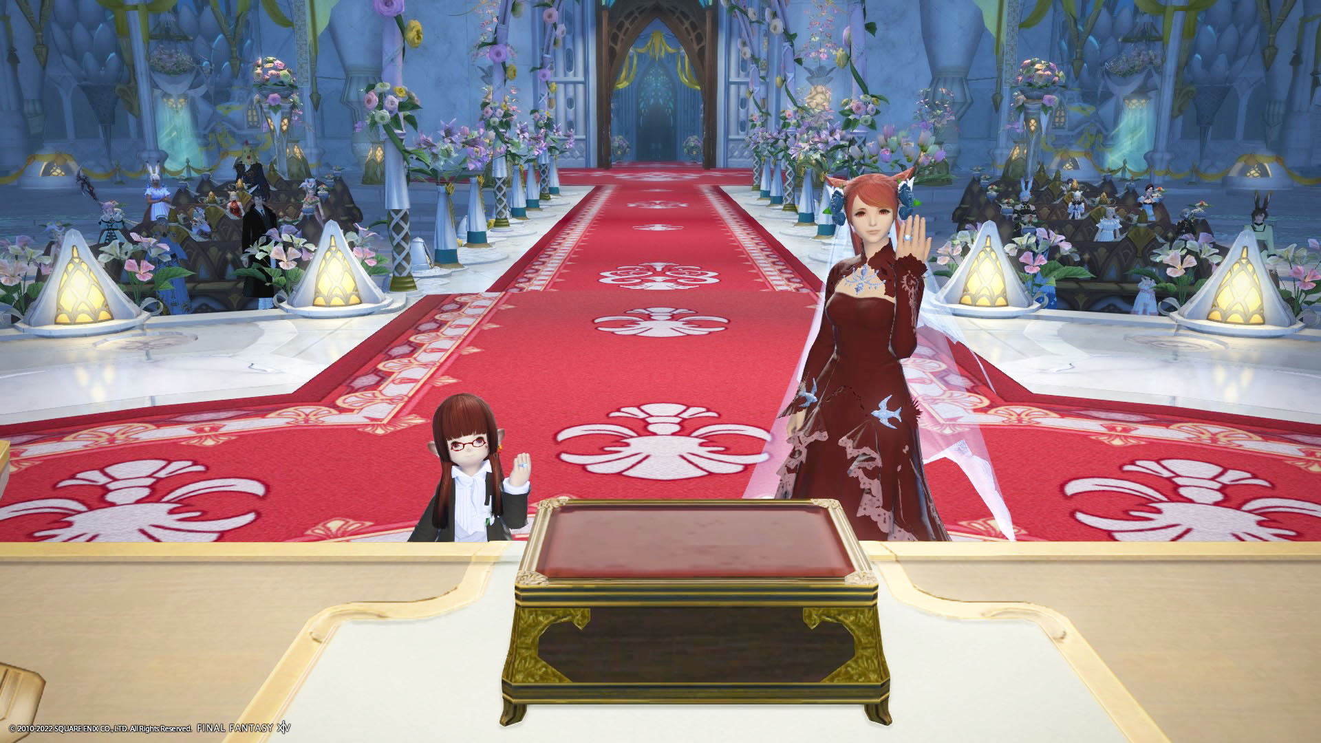 さんぽさんと私は黒衣森 : 東部森林 茨の森の北にある「十二神大聖堂」でその時間を待ってた。参加者様のお迎えの意味も含めて