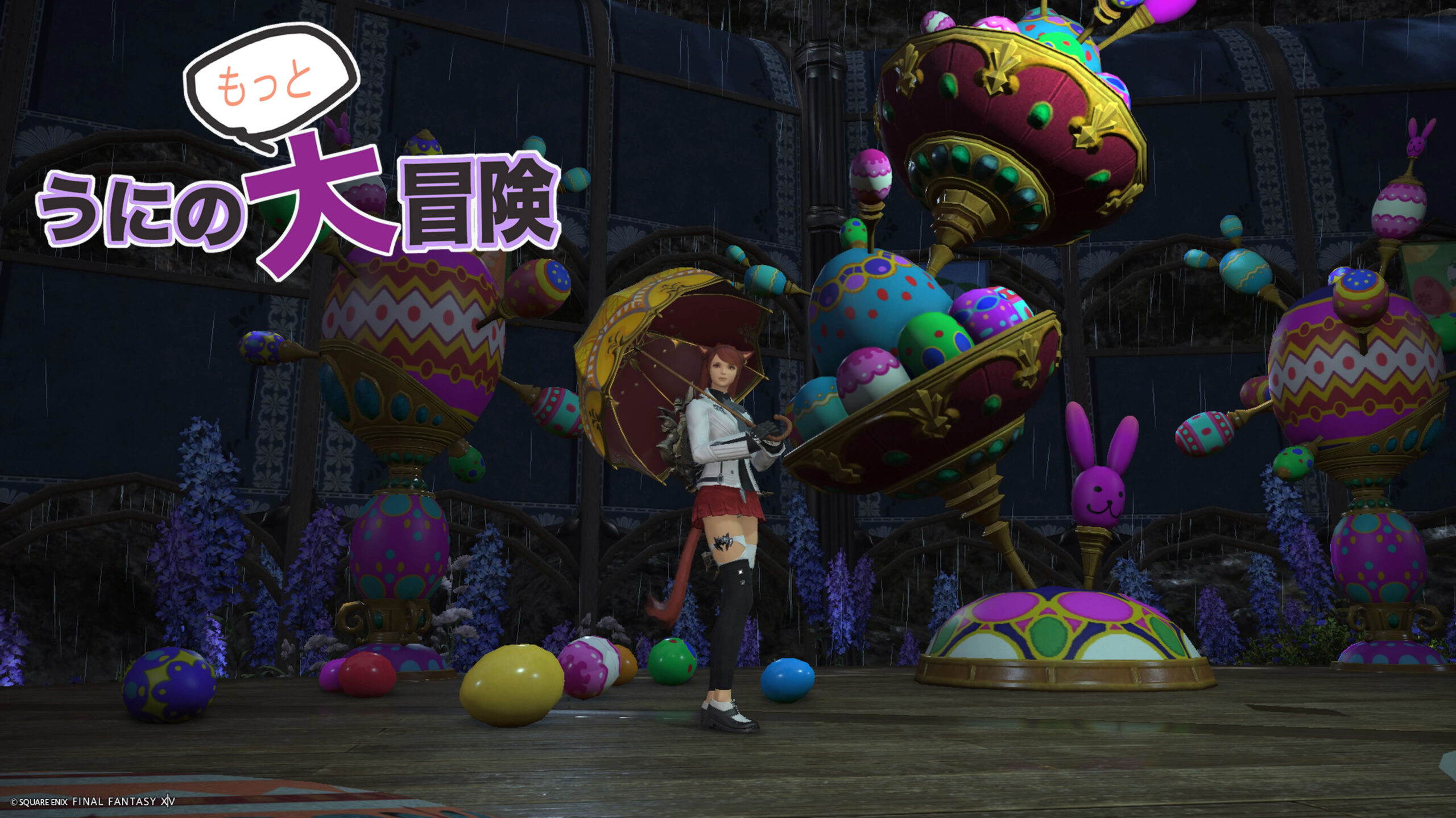 好きなことを止めないこと、走りつづけること。FF14エッグハント2025 FF14 X Facebook はてブ LINE コピー 2025.04.25 ども、うにだよ。 FF14楽しんでるよ!(^^♪ エッグハントはFF14のイベント。 ほんとに背景はいつだって楽しい♪ ちょうど雨が降っててエッグハントでもらった傘が映えるね( *´艸`)💖 ただ単にクエストを進めるだけじゃない。 なぜかオメガのキャラクター二人が戯れているw かわいい♪ しかも傘差してるw 色とりどりの卵。 散りばめられてる可愛いの要素。 好きなことを続けること。 簡単なようで難しい。 難しいようで簡単。 自分の心に正直に素直になりたい。